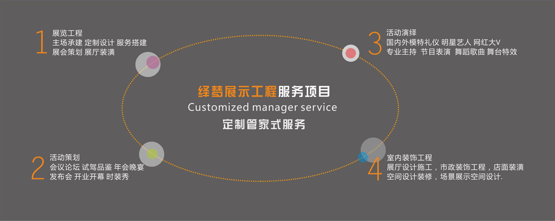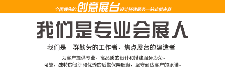 公司秉承“誠信為本,質量為源,服務優先”的經營理念,讓藝術與企業發展同行,全心筑就精品展臺,公司現擁有一批實力資深的設計團隊及精湛的施工隊伍,能為你提供全國各地會展城市展會策劃設計和展臺布置搭建,巡展倉儲的全國一站式服務。
